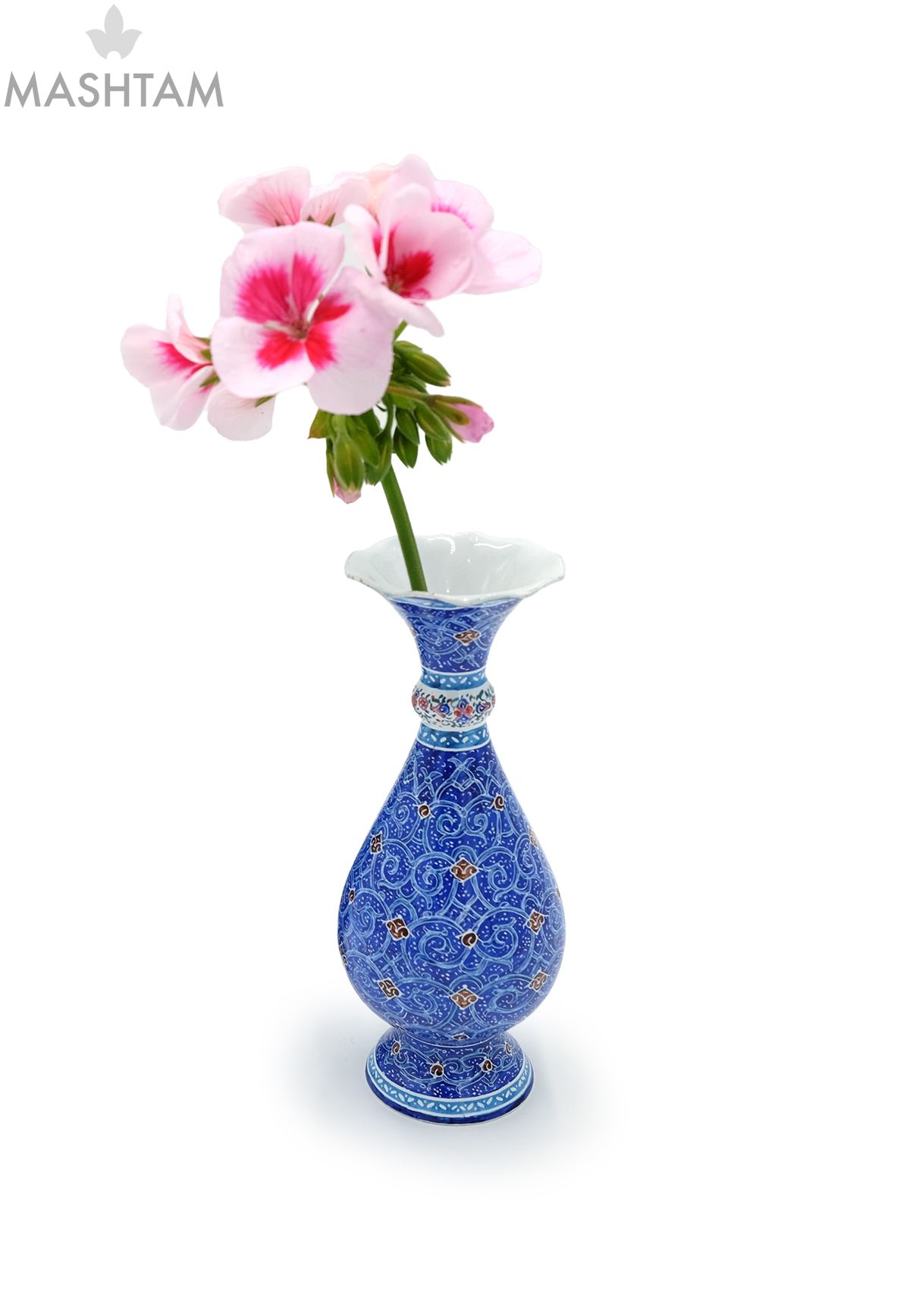 Minakari/Emaillieren ist eine Kunst mit einer Geschichte von etwa fünftausend Jahren, die verwendet wurde, um verschiedene Ornamente und Geschirr zu verschönern. Diese Kunst ist eine Kombination aus Feuer und Erde, die sich mit der Malkunst vermischt und wunderschöne Muster erzeugt. Bemalen und Dekorieren von Metallen wie Gold, Silber und Kupfer mit speziellen glasierten Farben, die bei sehr hoher Temperatur (750 bis 850 Grad Celsius) eingebrannt und fixiert werden. Die nächste wörtliche Bedeutung für Mina ist blauer Himmel.