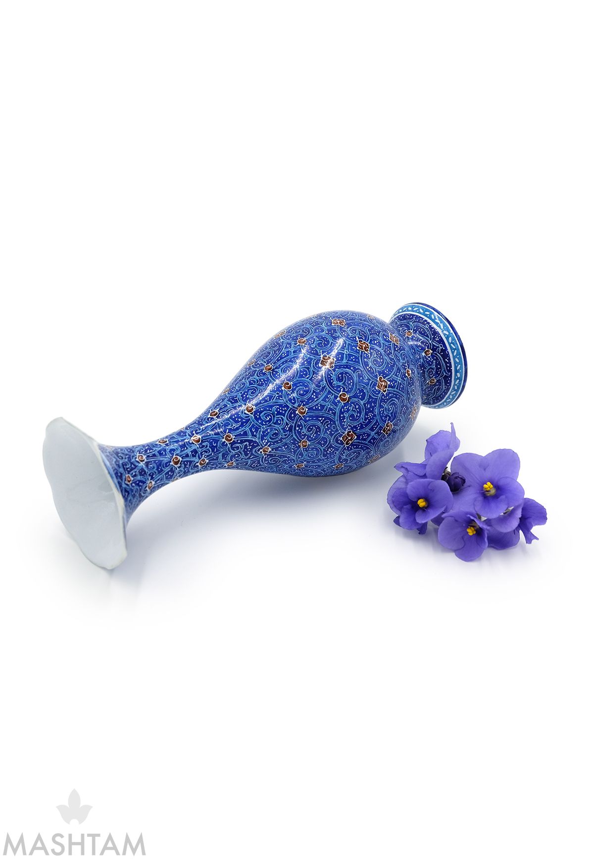 Minakari/Emaillieren ist eine Kunst mit einer Geschichte von etwa fünftausend Jahren, die verwendet wurde, um verschiedene Ornamente und Geschirr zu verschönern. Diese Kunst ist eine Kombination aus Feuer und Erde, die sich mit der Malkunst vermischt und wunderschöne Muster erzeugt. Bemalen und Dekorieren von Metallen wie Gold, Silber und Kupfer mit speziellen glasierten Farben, die bei sehr hoher Temperatur (750 bis 850 Grad Celsius) eingebrannt und fixiert werden. Die nächste wörtliche Bedeutung für Mina ist blauer Himmel.