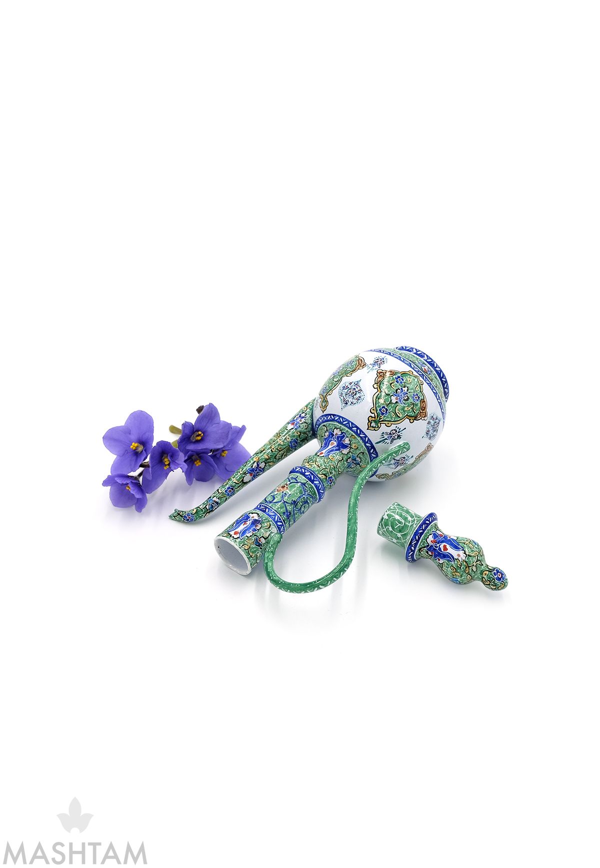Mina ist ein Kunstwerk, bei dem verschiedene Designs, meist mit weißer Feder, auf Kupfer-, Silber- und Goldgeschirr graviert werden. Die Farbe des Hintergrunds unter den Motiven ist normalerweise blau, grün und manchmal rot, was uns, wenn wir das Innere emaillierter Gefäße mit den Augen der Kunst betrachten, an die schöne blaue Weite des Himmels erinnert.